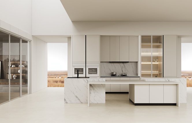 通过hth华体会官网厨柜量体裁柜,定制出适合主厨下厨的烹饪区和洗涤区的舒适高度。